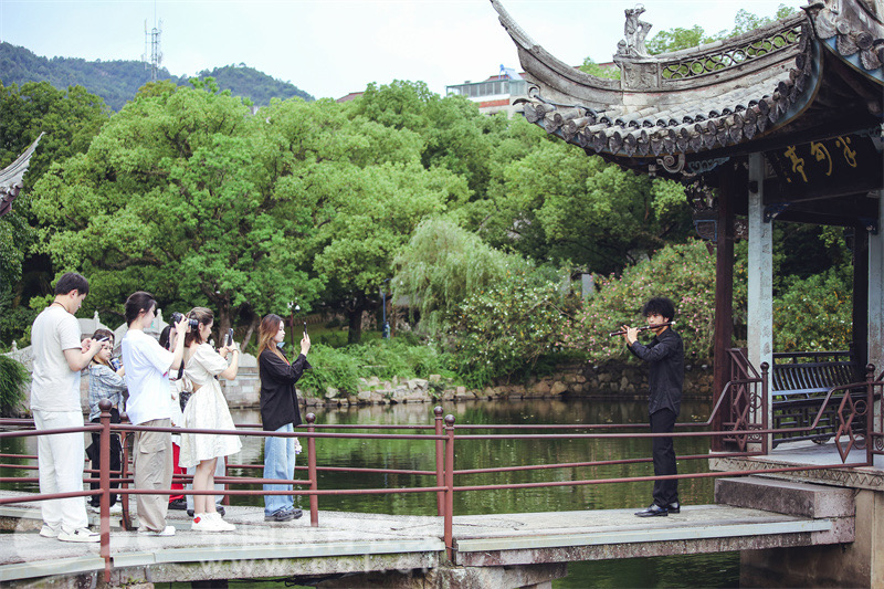 在臺(tái)州府城古城墻下,一場(chǎng)融合流行音樂、舞蹈串燒、音樂劇及戲曲元素的綜合晚會(huì),將現(xiàn)場(chǎng)氣氛推向了高潮。與此同時(shí),青年學(xué)子還在臺(tái)州府城景區(qū)的多個(gè)標(biāo)志性地點(diǎn)舉辦了多場(chǎng)文藝匯演——從東湖字幕畫框前的流光溢彩到府城說媒戲臺(tái)的古韻今風(fēng),再到巾山廣場(chǎng)的熱烈歡騰,每一場(chǎng)演出都精心策劃、認(rèn)真籌備,力求將最好的藝術(shù)呈現(xiàn)給廣大市民與游客。恰逢暑期,音樂為古城旅游賦能,這座千年古城“活起來”了。
