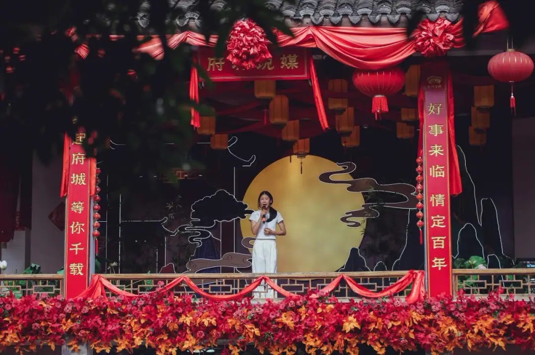 隨著對地方文化的深入了解,實踐團瞄準地方和百姓需求,分別按照白天場、晚上場,開展集戲劇和音樂劇兩大板塊的文旅實踐。戲劇系的同學(xué)們不僅展示了傳統(tǒng)文化的深邃與韻味,更以現(xiàn)代的視角和創(chuàng)新的演繹方式,讓古老的藝術(shù)煥發(fā)出新的生機。舞臺上《牡丹亭·幽媾》纏綿悱惻、《蘭花吟》高潔清雅、《走進快活林》俠骨柔情,夜幕降臨,古城迎來第一波音樂劇,青春熱烈的音樂劇點燃古城。戲劇系青年教師林家希、羅穎共同創(chuàng)編的原創(chuàng)《馬戲之王》令人耳目一新。每一句唱詞,每一個動作,都為古城文旅“聚人氣、留人流”提供了全新的解決方案。