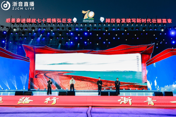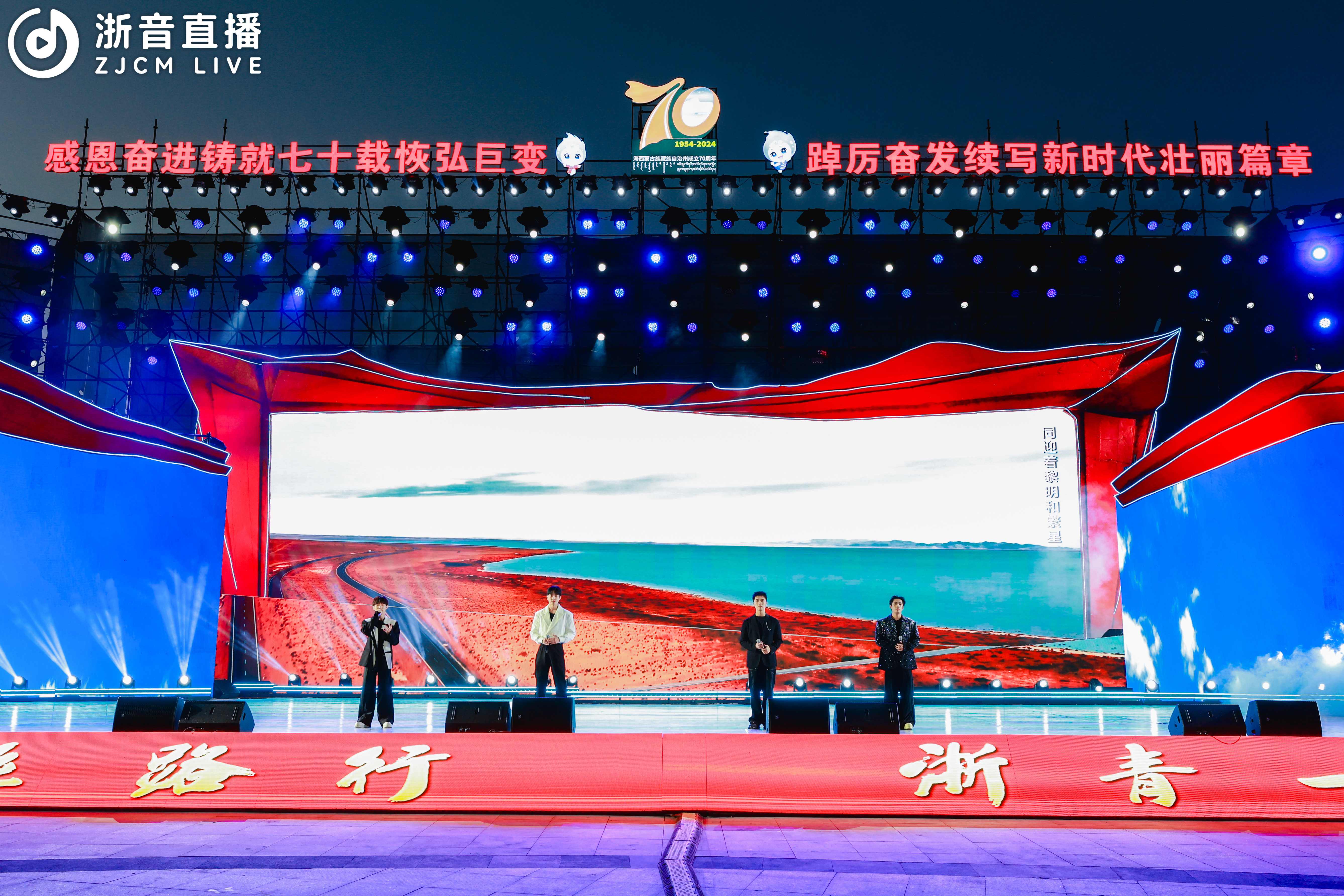 “詩(shī)畫(huà)浙江”遇上“大美青海”,攜手繪就江山錦繡;“四溢茶香”邂逅“戈壁綠洲”,共話浙青山海之情。8月6日晚,“宋韻絲路行 浙青一家親”慶祝海西蒙古族藏族自治州成立70周年文藝晚會(huì)在海西州德令哈市奧運(yùn)廣場(chǎng)隆重上演。晚會(huì)由浙江省援青指揮部、海西州委、海西州人民政府、浙江音樂(lè)學(xué)院共同主辦。中央有關(guān)部門(mén)祝賀團(tuán)、青海省黨政軍代表團(tuán)、海西州四大班子領(lǐng)導(dǎo),以及浙江音樂(lè)學(xué)院相關(guān)領(lǐng)導(dǎo)出席并觀看晚會(huì)。晚會(huì)現(xiàn)場(chǎng)16000余名海西州群眾觀看演出,20余家媒體平臺(tái)進(jìn)行直播,線上累計(jì)觀看人數(shù)超過(guò)880萬(wàn)。