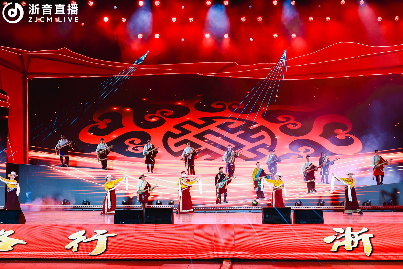 西子湖畔水波蕩漾、大美海西百川織錦。隨著兩地藝術(shù)家共同演繹的優(yōu)美曲調(diào)、曼妙舞蹈,浙青兩地的大好河山、多民族的風(fēng)情畫(huà)卷在觀眾面前徐徐展開(kāi)。亞運(yùn)主題歌曲《同愛(ài)同在》、登上2023年央視春晚的舞蹈《碇步橋》、當(dāng)?shù)匕傩斩炷茉敻枨肚嗖馗咴?、民?lè)《賽馬》、獻(xiàn)給浙江援青人的歌《到處都有你的身影》……浙青兩地民族團(tuán)結(jié)、山海情深的動(dòng)人篇章,以及當(dāng)代中國(guó)社會(huì)主義現(xiàn)代化建設(shè)和改革開(kāi)放的火熱場(chǎng)景,展現(xiàn)在觀眾眼前。