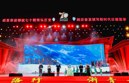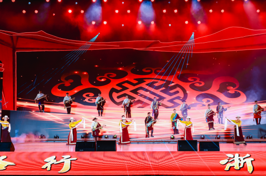 “宋韻絲路行 浙青一家親”海西蒙古族藏族自治州成立70周年文藝晚會(huì)昨天在青海省海西州德令哈市舉行。晚會(huì)以“山海相連”“大美不言”和“幸福家園”三個(gè)篇章,描繪了一幅浙青兩省人文相融、民族團(tuán)結(jié)的壯麗畫卷,展現(xiàn)了浙江援建青海海西十四載,兩地?cái)y手并進(jìn)、共謀發(fā)展的深厚情誼。