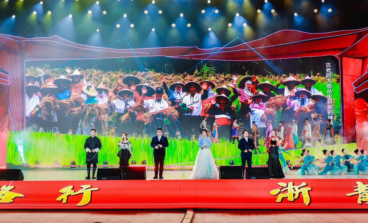 西子湖畔水波蕩漾、大美海西百川織錦。隨著兩地藝術(shù)家共同演繹的優(yōu)美曲調(diào)、曼妙舞蹈,浙青兩地的大好河山、多民族的風(fēng)情畫卷在觀眾面前徐徐展開。杭州亞運(yùn)會主題歌曲《同愛同在》、登上2023年央視春晚的舞蹈《碇步橋》、當(dāng)?shù)匕傩斩炷茉敻枨肚嗖馗咴贰⒚駱贰顿愸R》、獻(xiàn)給浙江援青人的歌《到處都有你的身影》……浙青兩地民族團(tuán)結(jié)、山海情深的動人篇章,以及當(dāng)代中國社會主義現(xiàn)代化建設(shè)和改革開放的火熱場景,展現(xiàn)在觀眾眼前。