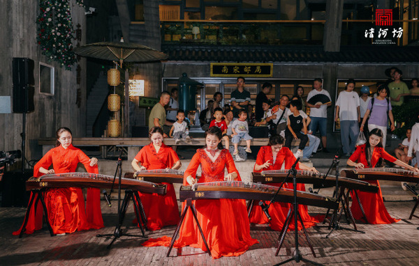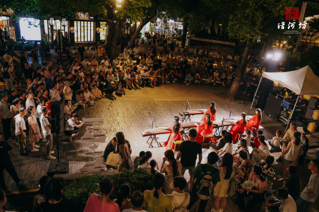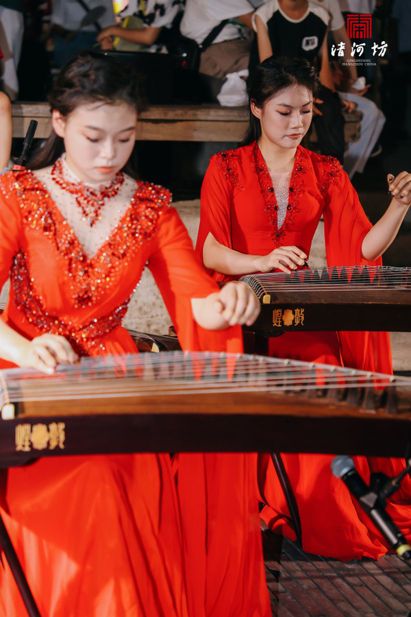 這個(gè)七夕夜,鼓樓小廣場(chǎng)的弧形觀眾席上人頭攢動(dòng)。作為清河坊“夏夜漫游”的系列活動(dòng)之一,浙江音樂學(xué)院MTC箏團(tuán)帶來了一場(chǎng)國(guó)風(fēng)雅韻專場(chǎng)音樂會(huì)。