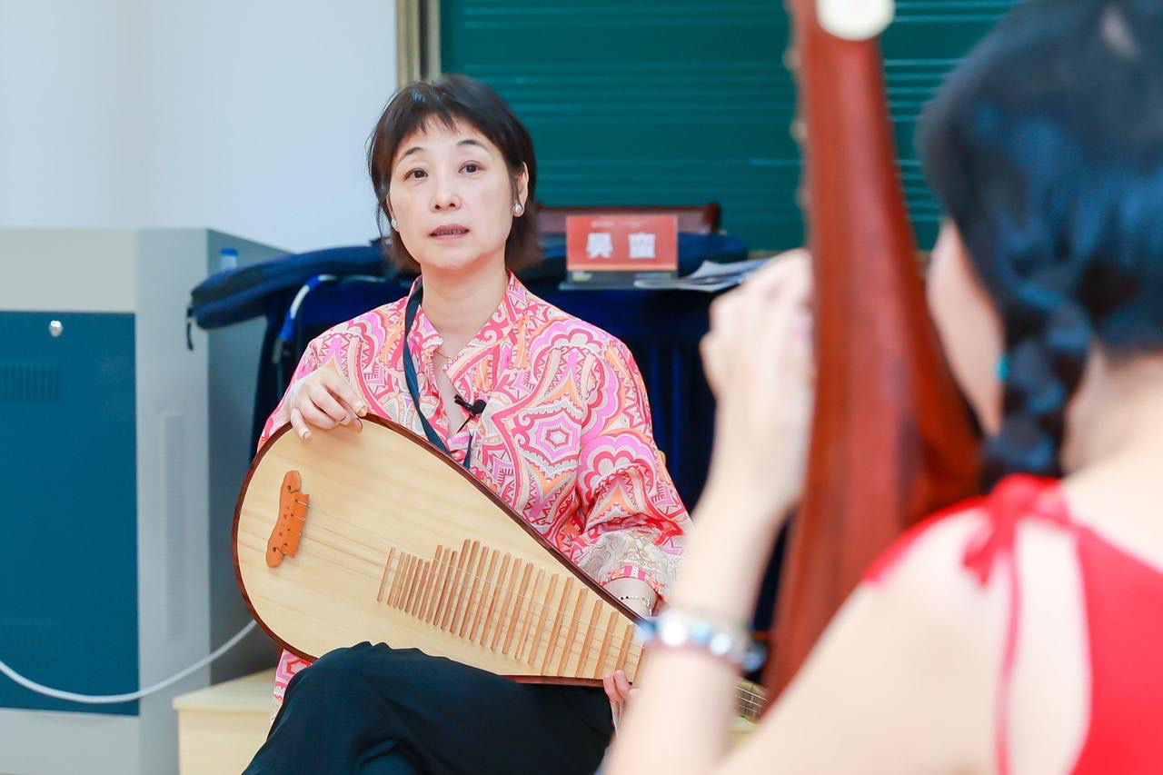 排練室里,6個(gè)學(xué)員圍坐一圈,她們各自準(zhǔn)備好手中的樂(lè)器:琵琶、古琴、箜篌、笛子,一起看向這堂課的導(dǎo)師——著名琵琶演奏家、浙江音樂(lè)學(xué)院特聘教授吳蠻。