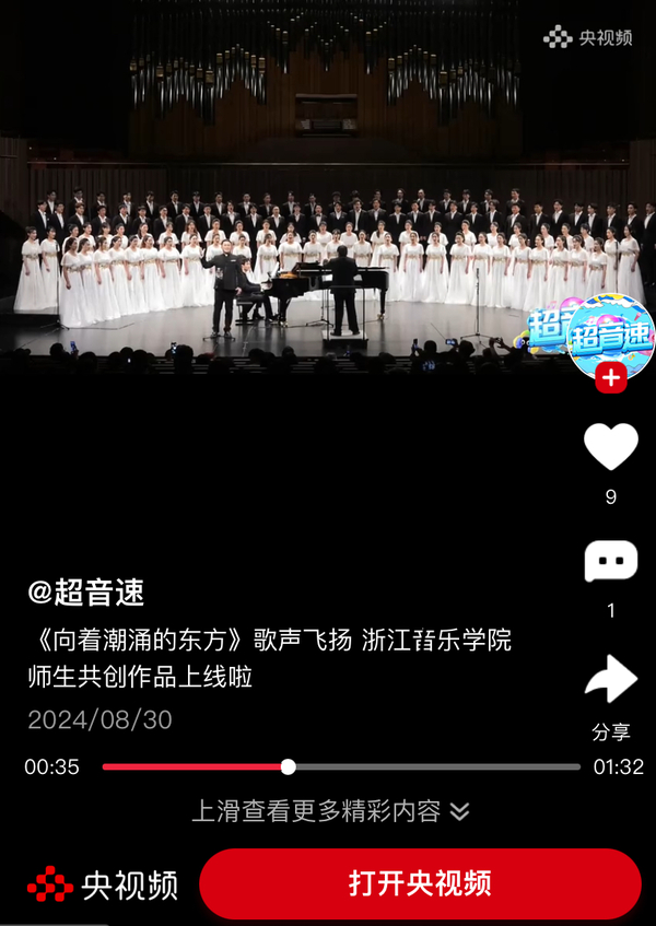 央視頻:《向著潮涌的東方》歌聲飛揚 浙江音樂學(xué)院師生共創(chuàng)作品上線啦