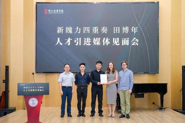 9月19日上午,新魄力四重奏組合、田博年人才引進(jìn)媒體見面會在浙江音樂學(xué)院教師發(fā)展中心舉行?,F(xiàn)場,浙江音樂學(xué)院院長王瑞為駐院藝術(shù)家團(tuán)隊新魄力四重奏、新引進(jìn)藝術(shù)家田博年頒發(fā)聘書。這一歷史性的合作,不僅標(biāo)志著浙江音樂學(xué)院發(fā)展歷程中的一個重要里程碑,更是對“人才培養(yǎng)+藝術(shù)實踐”創(chuàng)新模式“2.0版”華麗升級的最佳詮釋。