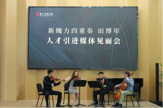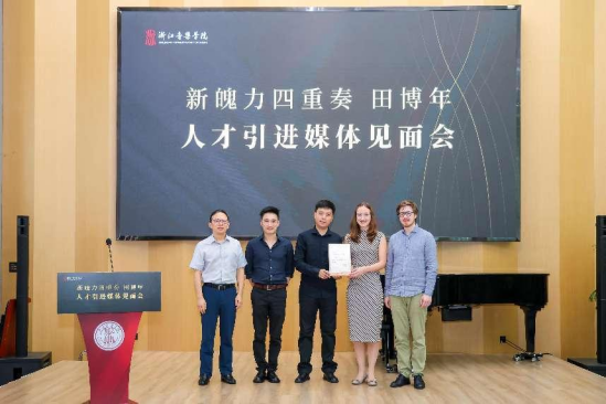 9月19日上午,新魄力四重奏組合、田博年人才引進(jìn)媒體見(jiàn)面會(huì)在浙江音樂(lè)學(xué)院教師發(fā)展中心舉行,當(dāng)今新生代弦樂(lè)四重奏中最出類拔萃的重奏組之一新魄力四重奏與著名華人大提琴演奏家田博年教授正式加盟浙江音樂(lè)學(xué)院?,F(xiàn)場(chǎng),浙江音樂(lè)學(xué)院院長(zhǎng)王瑞為駐院藝術(shù)家團(tuán)隊(duì)新魄力四重奏、新引進(jìn)藝術(shù)家田博年頒發(fā)聘書(shū)。這一歷史性的合作,不僅標(biāo)志著浙江音樂(lè)學(xué)院發(fā)展歷程中的一個(gè)重要里程碑,更是對(duì)“人才培養(yǎng)+藝術(shù)實(shí)踐”創(chuàng)新模式“2.0版”華麗升級(jí)的最佳詮釋。