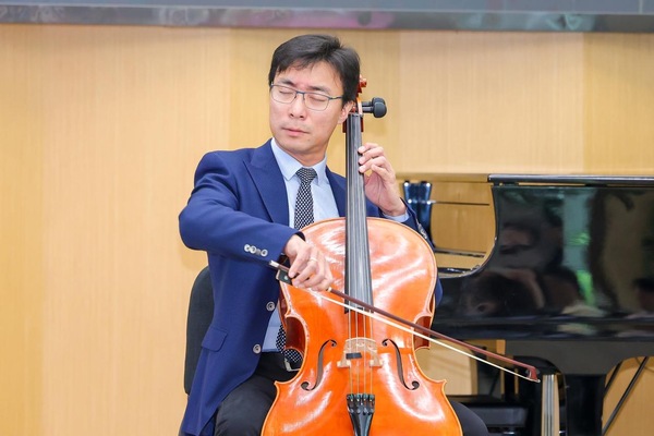 緊接著,著名華人大提琴演奏家田博年教授上臺(tái),他挪開譜架,閉上眼睛,悠揚(yáng)的樂聲從琴弦溢出。作為大提琴演奏領(lǐng)域的杰出代表,田博年回歸國內(nèi)受聘于浙江音樂學(xué)院特聘大提琴全職教授。