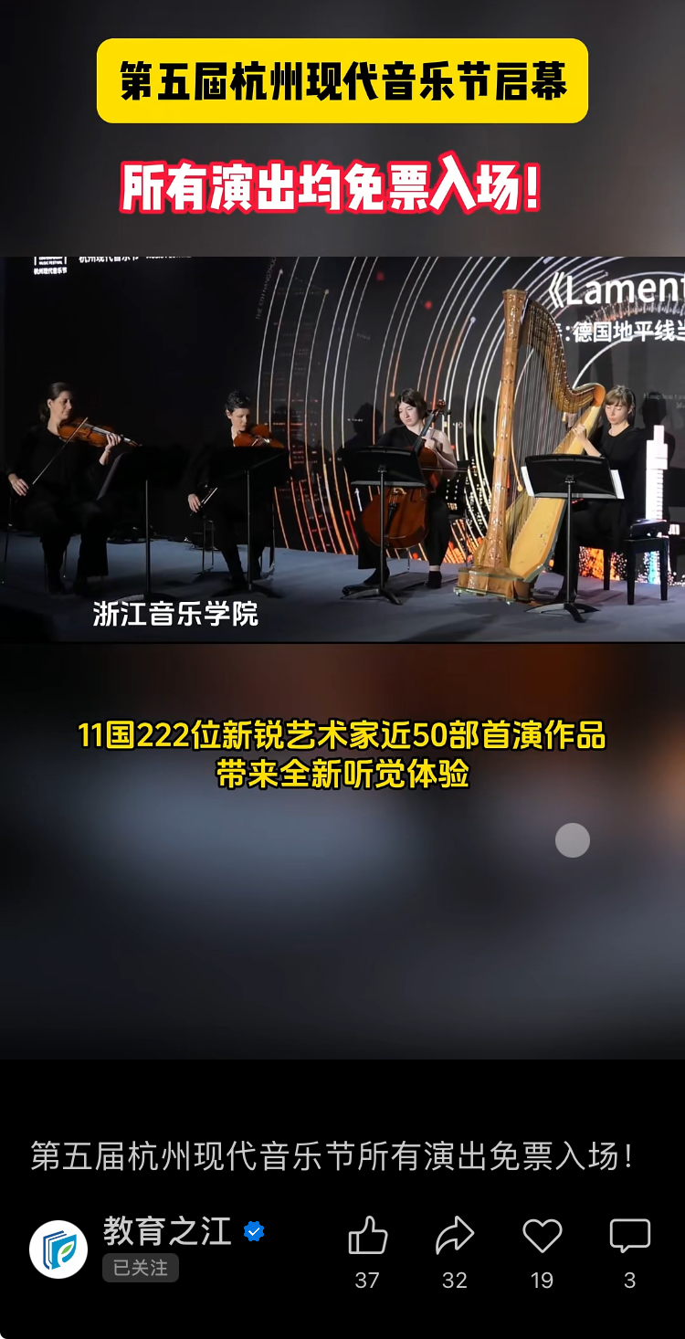 教育之江:第五屆杭州現(xiàn)代音樂(lè)節(jié)所有演出免票入場(chǎng)!