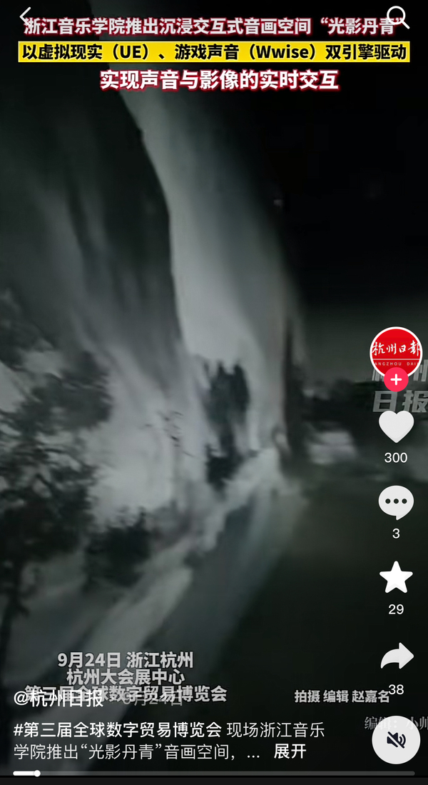 杭州日報:第三屆全球數(shù)字貿(mào)易博覽會 現(xiàn)場浙江音樂學院推出“光影丹青”音畫空間,超沉浸,能互動!