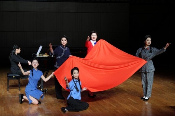 值得一提的是,音樂會的節(jié)目安排基本按照建黨至今的時間脈絡(luò),精心挑選了具有代表性的鋼琴作品進行呈現(xiàn)。例如,開場曲目配樂宣講《紅船——江南水鄉(xiāng)的夢,革命征程的帆》,帶領(lǐng)觀眾啟封那段紅色的記憶,追溯到1921年南湖啟航的紅船;鋼琴獨奏《翻身的日子》,展現(xiàn)了中國共產(chǎn)黨帶領(lǐng)人民取得新民主主義革命偉大勝利后,人民翻身的喜悅;歌曲《繡紅旗》,則體現(xiàn)了江姐等烈士的英勇精神;女高音獨唱《蝶戀花?答李淑一》,抒發(fā)了對革命先烈的深切悼念和崇高敬意;鋼琴獨奏《山丹丹開花紅艷艷》描述了中央紅軍與陜北紅軍勝利會師的感人場景;鋼琴獨奏《春舞》,則寫出了新中國成立后維族人民載歌載舞的生活場景等;最后,合唱《領(lǐng)航》以其磅礴的氣勢和深情的歌詞,將整場音樂會推向了高潮。這首歌曲不僅是對中國共產(chǎn)黨堅強領(lǐng)導(dǎo)的高度贊揚,更是對新時代中國特色社會主義事業(yè)光明前景的堅定信念和美好祝愿。