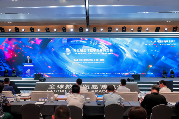作為第三屆全球數(shù)字貿(mào)易博覽會的特色活動之一,9月28日,由浙江音樂學(xué)院、杭州市商務(wù)局主辦的首屆AI歌曲創(chuàng)作&AI國際鋼琴比賽決賽在杭州大會展中心舉辦。