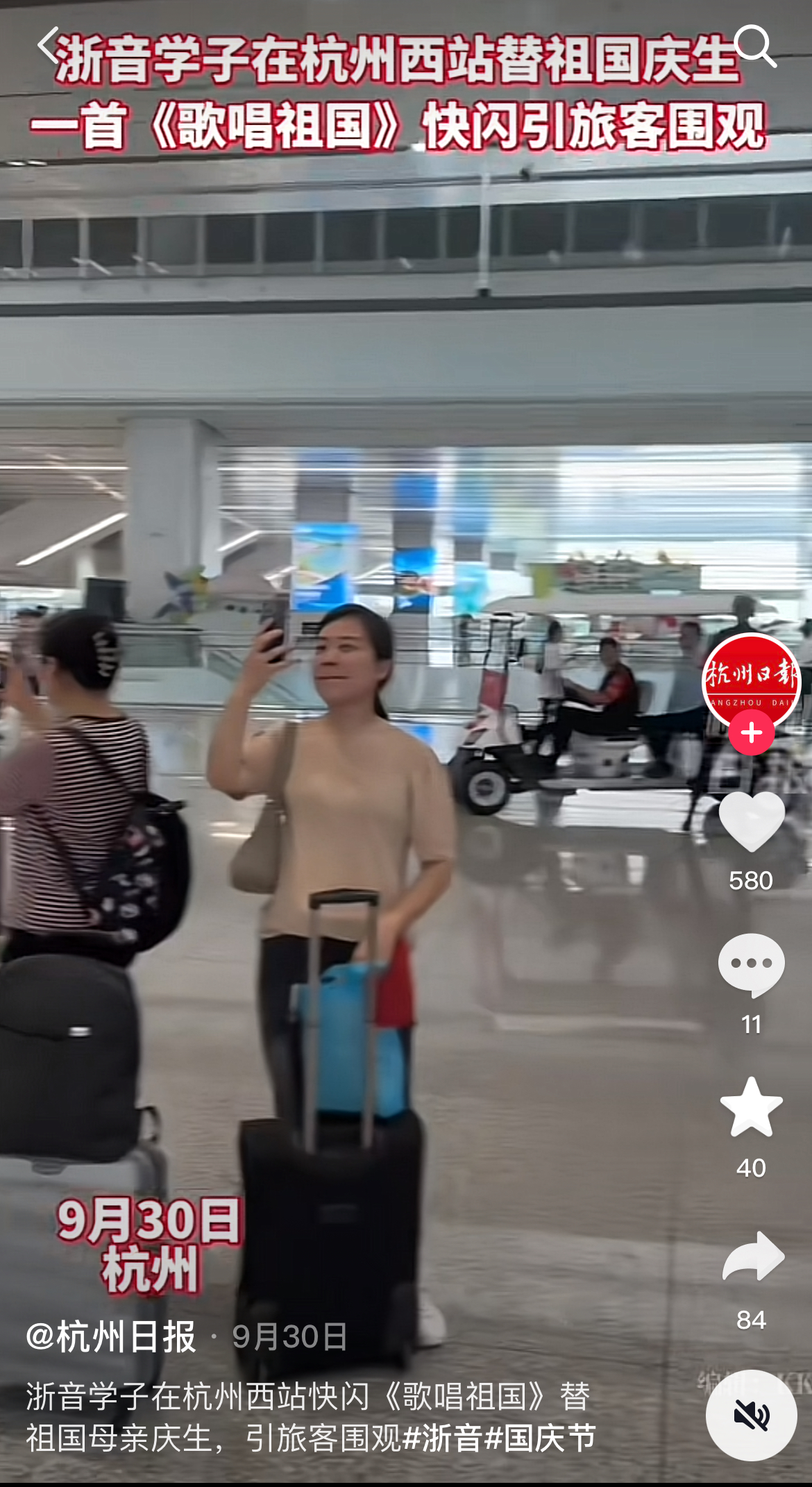 杭州日?qǐng)?bào):浙音學(xué)子在杭州西站快閃《歌唱祖國(guó)》替祖國(guó)母親慶生,引旅客圍觀