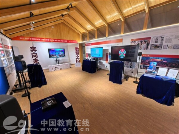 10月16日,浙江音樂學(xué)院數(shù)字音樂展廳在西湖區(qū)長(zhǎng)埭村文化禮堂正式設(shè)立對(duì)外展覽。音樂工程系師生為本次展覽帶來了學(xué)院參與第三屆全球數(shù)字貿(mào)易博覽會(huì)上的數(shù)字音樂展品,其中有剛剛舉辦的2024國(guó)際電子音樂節(jié)系列活動(dòng)介紹,在數(shù)貿(mào)會(huì)上浙江館展出的師生原創(chuàng)作品《爭(zhēng)鳴Voices of the Painted Face》《賽蒙塔Surmountar》《覓聲hasing Echoes》等數(shù)據(jù)驅(qū)動(dòng)樂器作品裝置。