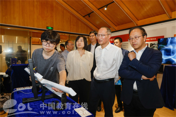 本次活動(dòng)恰逢全省高校“百個(gè)藝術(shù)院系支部聯(lián)村共建”工作現(xiàn)場(chǎng)推進(jìn)會(huì)召開。會(huì)前,省委教育工委專職副書記、省教育廳黨組副書記許翰信,中國(guó)美術(shù)學(xué)院黨委書記金一斌、西湖區(qū)委常委、組織部長(zhǎng)李軍以及省教育廳組織處、各兄弟高校組織部、西湖區(qū)委組織部和轉(zhuǎn)塘街道黨工委負(fù)責(zé)人等領(lǐng)導(dǎo)一行在學(xué)院黨委委員,組織部部長(zhǎng)李俊陪同下視察數(shù)字音樂展廳,他們觀看及操作每一件藝術(shù)科技展覽作品,認(rèn)真聽取關(guān)于作品創(chuàng)作理念以及藝術(shù)與科技結(jié)合成果作品的介紹。