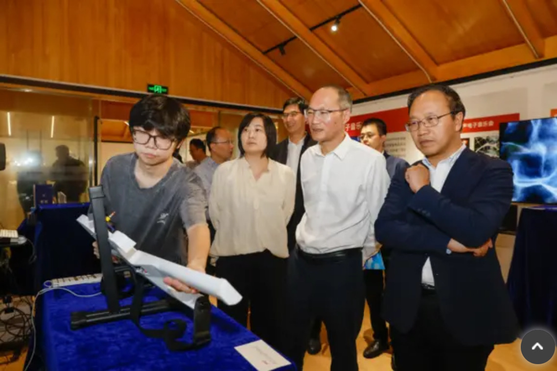 本次活動(dòng)恰逢全省高校“百個(gè)藝術(shù)院系支部聯(lián)村共建”工作現(xiàn)場(chǎng)推進(jìn)會(huì)召開(kāi)。會(huì)前,省委教育工委專職副書(shū)記、省教育廳黨組副書(shū)記許翰信,中國(guó)美術(shù)學(xué)院黨委書(shū)記金一斌、西湖區(qū)委常委、組織部長(zhǎng)李軍以及省教育廳組織處、各兄弟高校組織部、西湖區(qū)委組織部和轉(zhuǎn)塘街道黨工委負(fù)責(zé)人等領(lǐng)導(dǎo)一行在學(xué)院黨委委員,組織部部長(zhǎng)李俊陪同下視察數(shù)字音樂(lè)展廳,他們觀看及操作每一件藝術(shù)科技展覽作品,認(rèn)真聽(tīng)取關(guān)于作品創(chuàng)作理念以及藝術(shù)與科技結(jié)合成果作品的介紹。許翰信對(duì)學(xué)院創(chuàng)新舉措給予了高度肯定,他指出,這種將藝術(shù)與科技融合并帶入鄉(xiāng)村的做法,為高校藝術(shù)院系支部聯(lián)村共建開(kāi)辟了新路徑,更使鄉(xiāng)村普及到的音樂(lè)現(xiàn)代化、科技化。