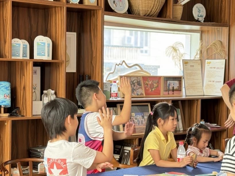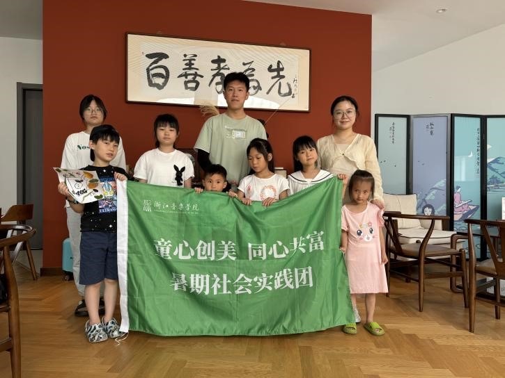 基于這一背景,團隊成員前往杭州市慈母橋村開展了一項以“童心創(chuàng)美·同心共富”為主題的美育實踐項目,團隊成員化身“童創(chuàng)導(dǎo)師”的身份,帶領(lǐng)鄉(xiāng)村兒童拓寬審美視野、助力鄉(xiāng)村文化振興、推動鄉(xiāng)村物質(zhì)與精神共富的堅實力量。項目負責(zé)人朱惠強介紹道,“我們以引導(dǎo)者的身份帶領(lǐng)孩子在日常生活與傳統(tǒng)文化中感受美、表達美、創(chuàng)造美,希望將美育理念融入日常生活,將創(chuàng)意滲透地深入人心。”本次在慈母橋村的項目實踐不僅是“藝術(shù)村長”機制的輻射與帶動兒童美育的行動指南,更是鑄牢鄉(xiāng)村美育振興的創(chuàng)新路徑與實踐之路。在關(guān)注鄉(xiāng)村物質(zhì)富裕的同時,注重精神文化的提升,通過深化美育實踐,激發(fā)鄉(xiāng)村兒童的創(chuàng)新潛力,為鄉(xiāng)村振興注入新的活力。