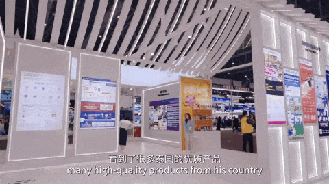泰國(guó)作為第三屆數(shù)貿(mào)會(huì)的主賓國(guó)之一,在會(huì)場(chǎng)內(nèi)設(shè)置了國(guó)家館。作為泰國(guó)人,馬德峰在館內(nèi)看到了很多泰國(guó)的優(yōu)質(zhì)產(chǎn)品,他相當(dāng)?shù)门d奮。