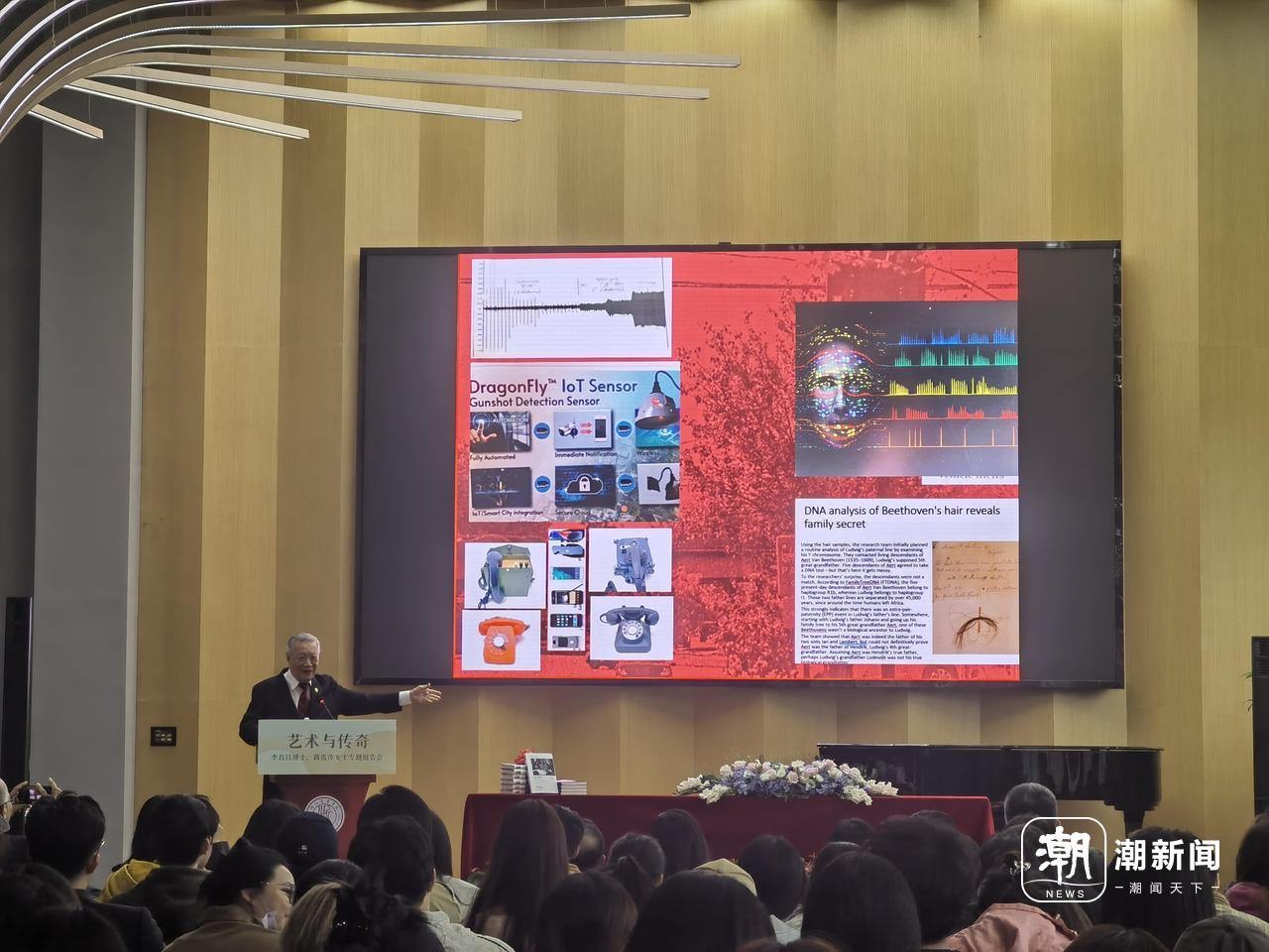 “其實我一點都不懂藝術(shù)。”講座一開始,李昌鈺來了這么一句。他說,雖然自己會吹口琴,那是小時候清苦生活中為數(shù)不多的慰藉,“但我做的是刑事鑒識,是科學,好像和藝術(shù)搭不上邊。”