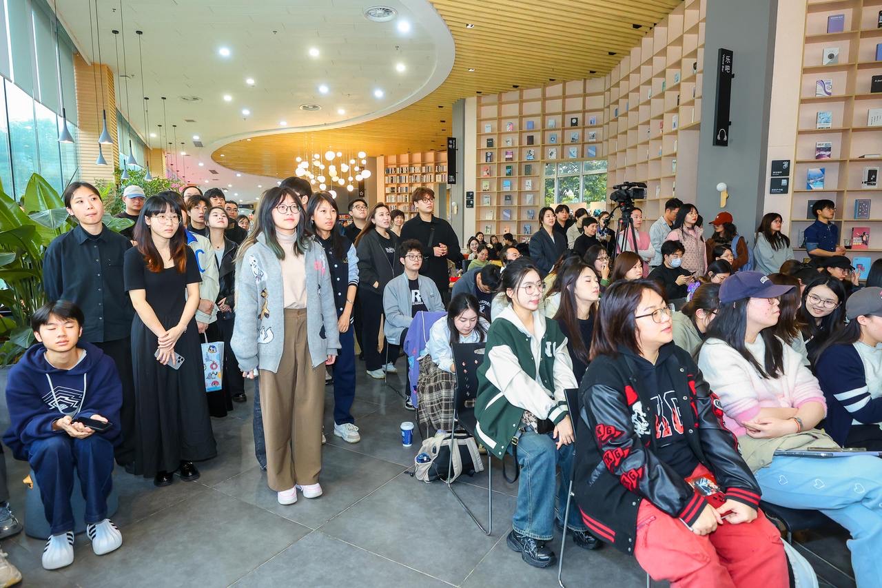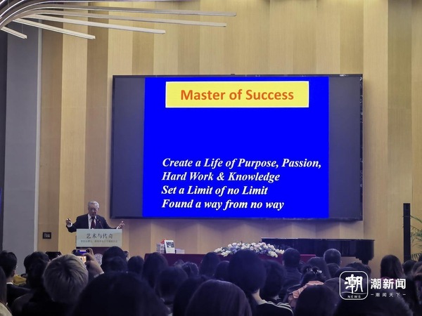 86歲的李昌鈺十分幽默風趣,他還在演講間隙還給學生們送出自己的小“周邊”,引得現(xiàn)場的“00后”大學生們掌聲不斷。還有不少學生,寧可站著也要聽完全程。