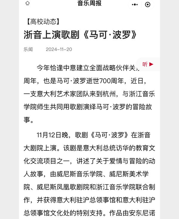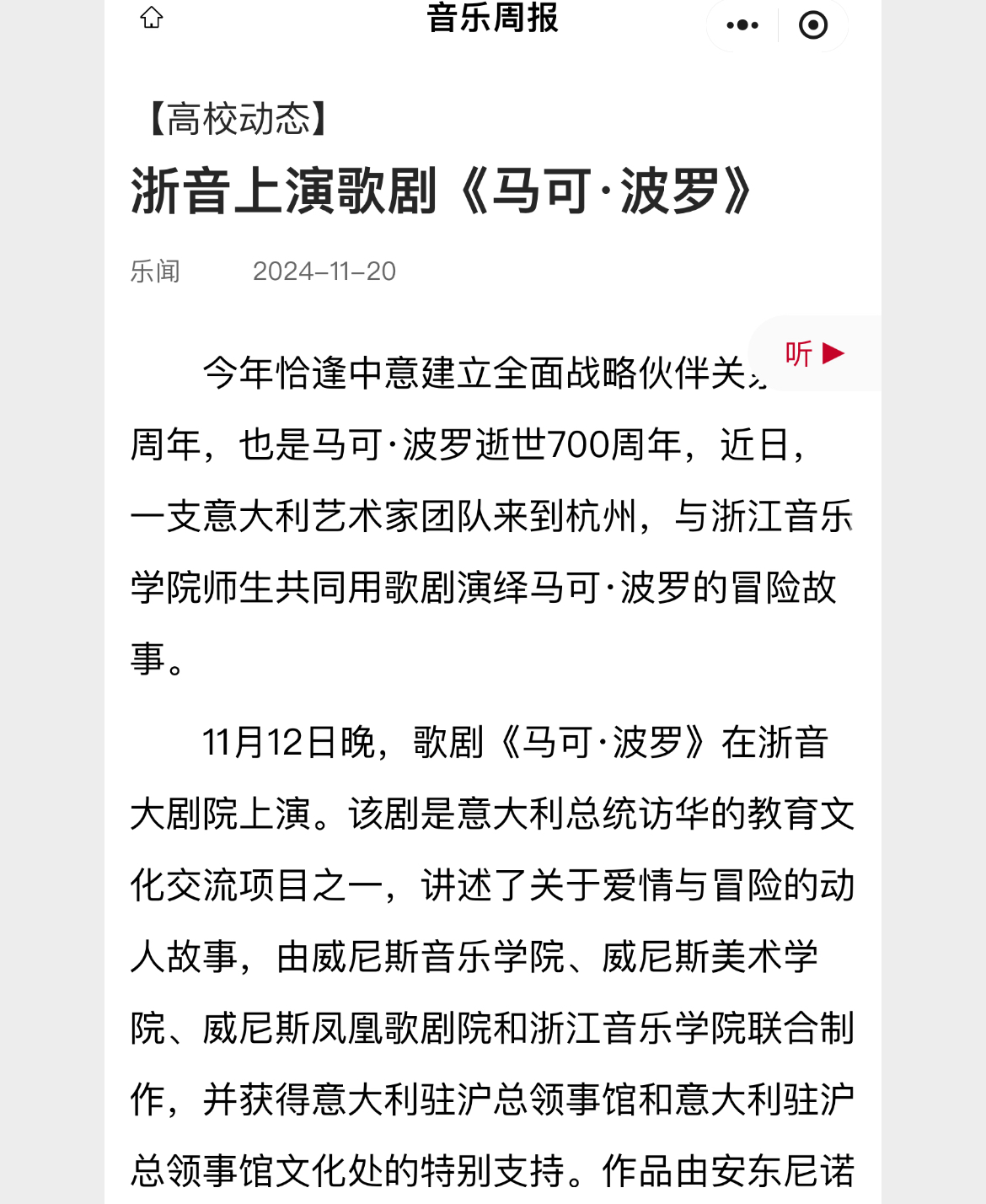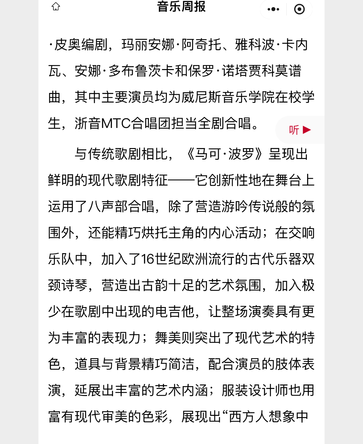 音樂周報:浙音上演歌劇《馬可·波羅》