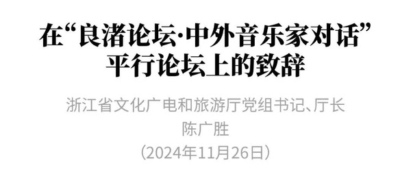 11月26日,“中外音樂家對話”平行論壇在杭州良渚舉行。省文化廣電和旅游廳黨組書記、廳長陳廣勝出席并致辭,現(xiàn)刊發(fā)致辭全文。