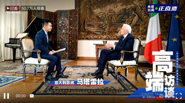 央視新聞:意大利總統(tǒng)馬塔雷拉在北京接受總臺《高端訪談》獨(dú)家專訪。