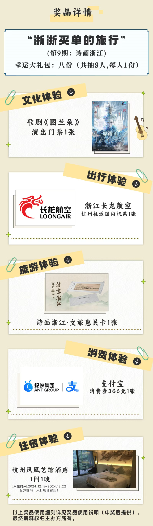 ??除了這些,還能近距離觀賞意大利歌劇大師普契尼的巔峰之作經(jīng)典歌劇《圖蘭朵》。浙浙買單,詩畫浙江,與您不見不散!