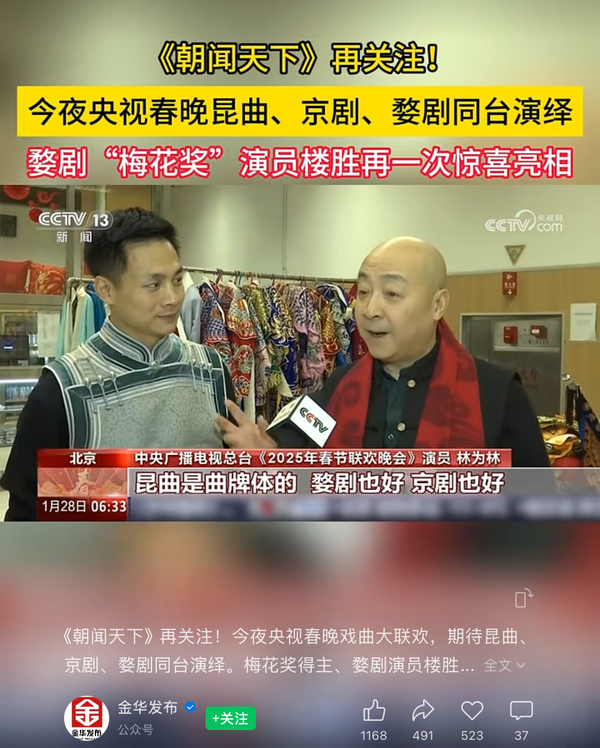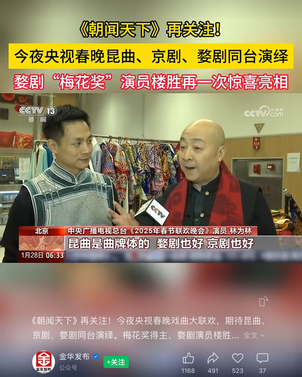 金華發(fā)布:《朝聞天下》再關(guān)注!今夜央視春晚戲曲大聯(lián)歡,期待昆曲、京劇、婺劇同臺演繹。梅花獎得主、婺劇演員樓勝再一次驚喜亮相。