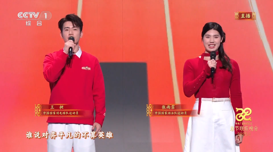 浙籍羽毛球國(guó)手王昶,與張雨霏等其他運(yùn)動(dòng)員一起,和陳奕迅演唱《孤勇者》,他本人表示上春晚比上比賽場(chǎng)還要緊張。