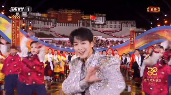 西藏拉薩分會(huì)場(chǎng)中,杭州小伙何洛洛,與劉宇等在《格?;ㄩ_》中帶來舞蹈表演。