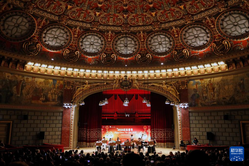 這是1月20日在羅馬尼亞首都布加勒斯特的雅典娜音樂廳拍攝的2025“歡樂春節(jié)”中國旋律專場音樂會現(xiàn)場。