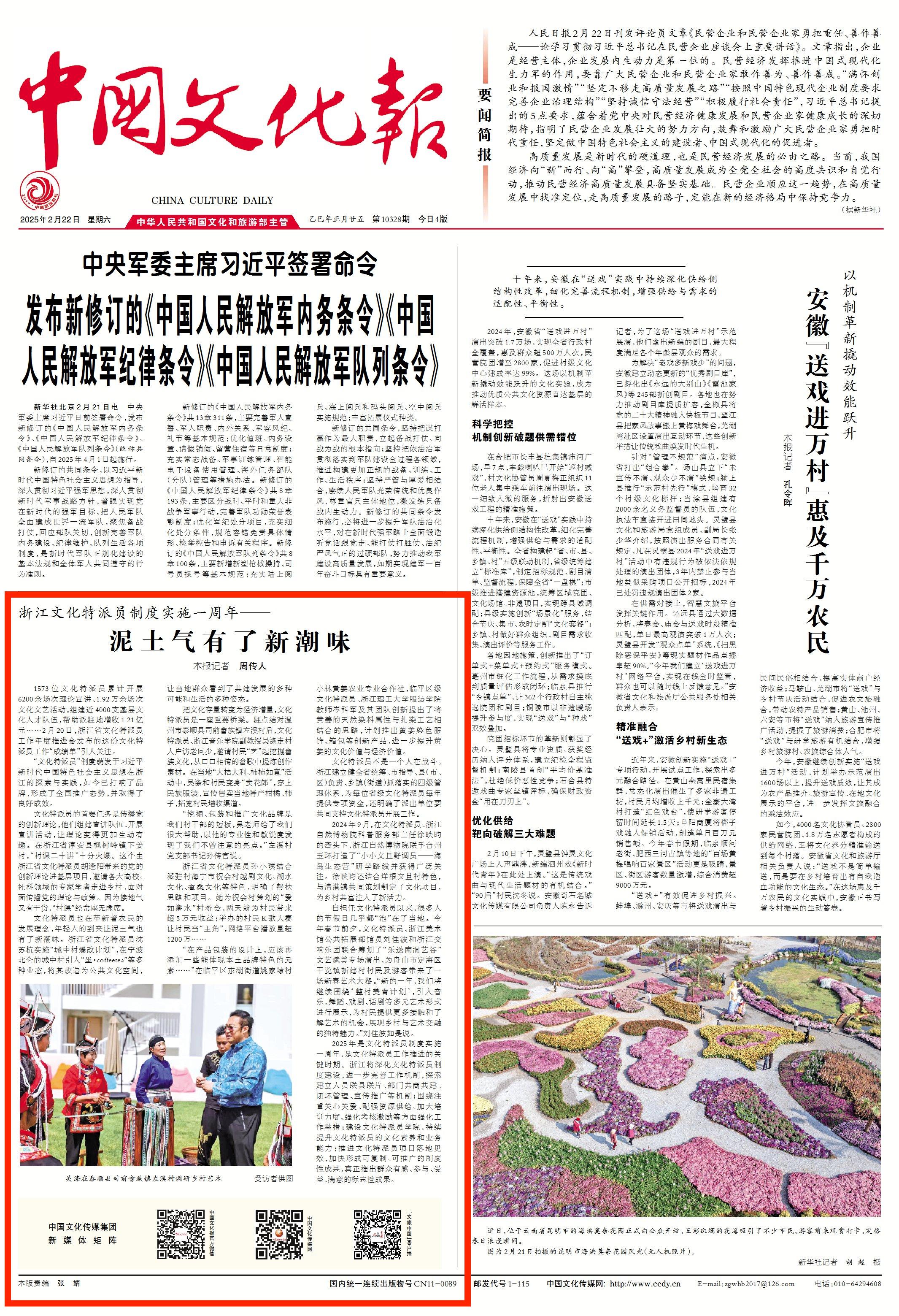中國文化報:浙江文化特派員制度實施一周年——泥土氣有了新潮味