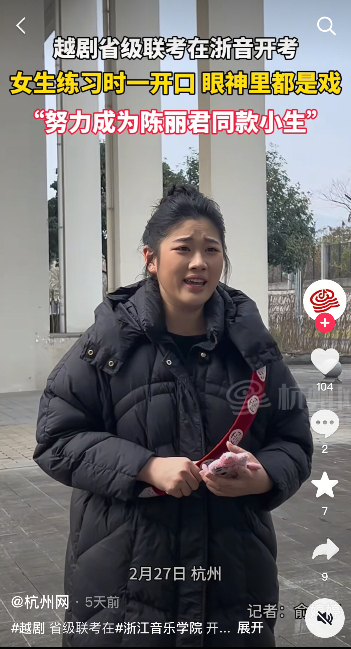 新聞來(lái)源:7.41 復(fù)制打開(kāi)抖音,看看【杭州網(wǎng)的作品】# 越劇 省級(jí)聯(lián)考在# 浙江音樂(lè)學(xué)院 開(kāi)考,女生在... https://v.douyin.com/i52cDgGd/ uSl:/ G@I.Iv 06/06