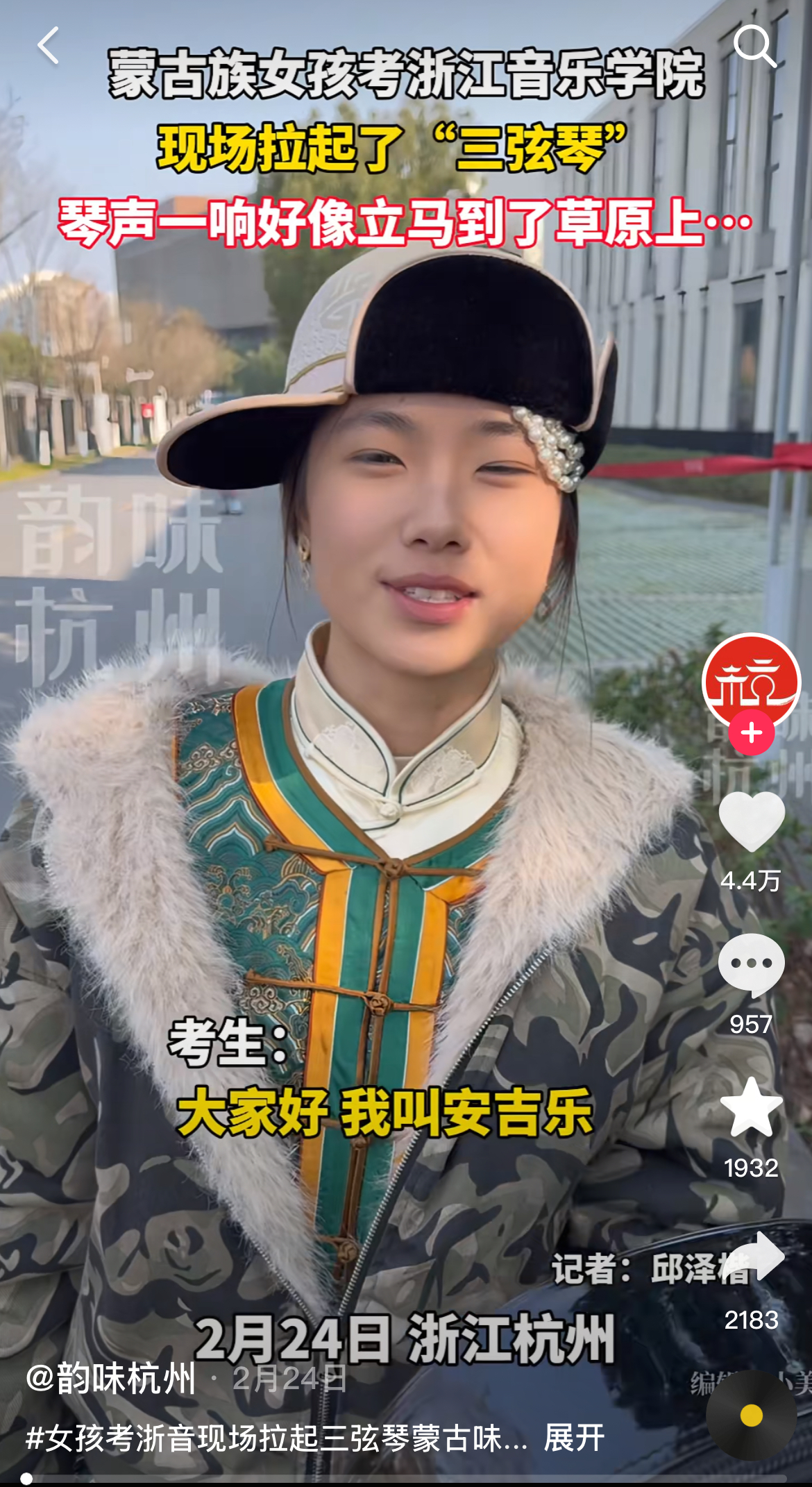 新聞來源:6.12 復(fù)制打開抖音,看看【韻味杭州的作品】# 女孩考浙音現(xiàn)場拉起三弦琴蒙古味十足 !# 杭州... https://v.douyin.com/i58U2cSw/ W@M.JV HVl:/ 11/04