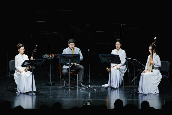 音樂會以琵琶與四重奏《春雨·心雨》拉開帷幕,青年琵琶演奏家黃琳以精湛的技藝,將春雨的細(xì)膩和心雨的纏綿演繹得淋漓盡致,仿佛將觀眾帶入煙雨朦朧的江南水鄉(xiāng)。隨后,青年笙演奏家張馨藝帶來《行香子》,悠揚(yáng)婉轉(zhuǎn)的笙音,仿佛訴說著古老的故事,令人沉醉其中。