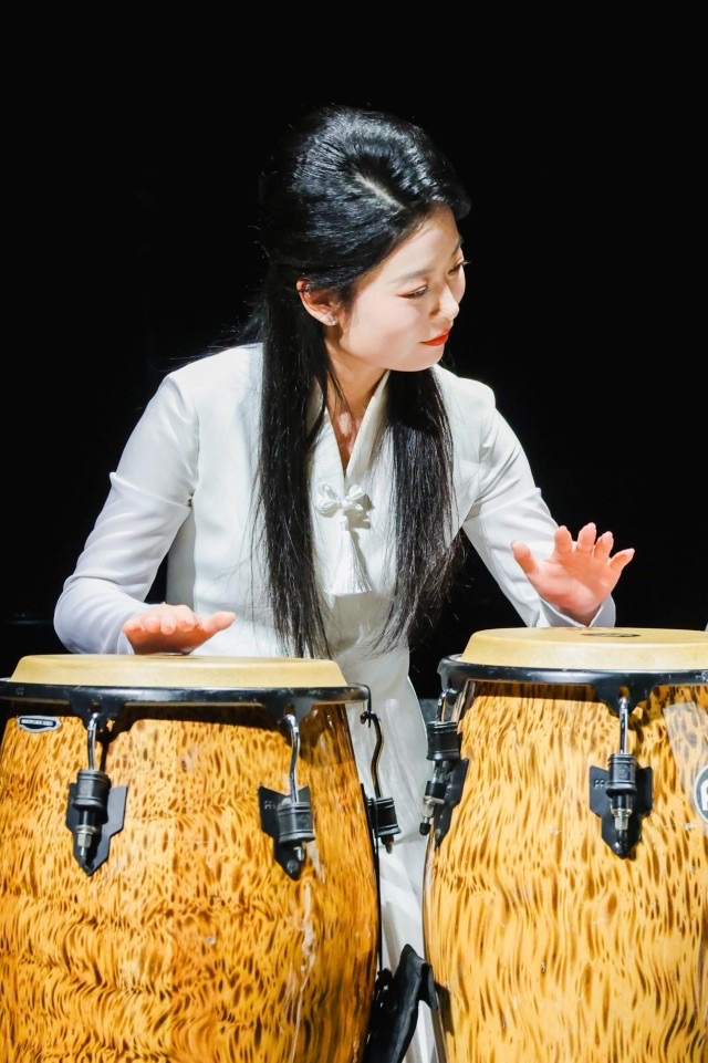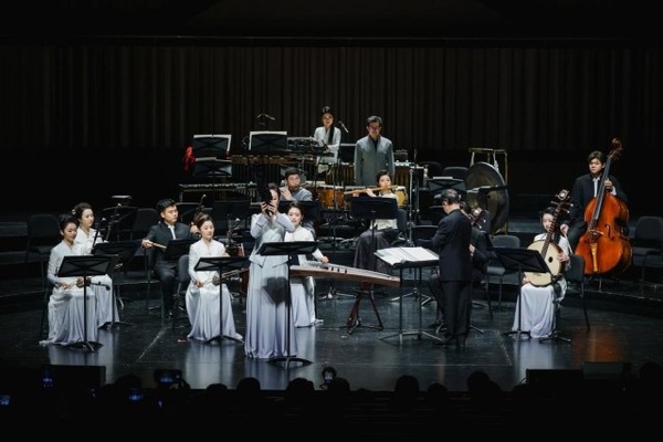 絲竹與嗩吶《染》由樂團(tuán)藝術(shù)總監(jiān)王甫建教授改編,青年嗩吶演奏家陳銘楠演奏,開創(chuàng)性地以嗩吶模仿人聲,并與絲竹樂器完美融合,為聽眾們營造出一種空靈悠遠(yuǎn)的意境。鋼琴、彈撥與打擊樂《靈秀》則是一場東西方音樂的對(duì)話,鋼琴演奏家張正宸和打擊樂演奏家邱一鳴的精彩演繹,展現(xiàn)了音樂的多樣性和包容性。