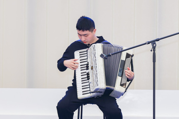 這場(chǎng)公益音樂(lè)會(huì)精心策劃了三個(gè)具有深意的篇章。在第一篇章“溫暖”中,大喇叭特殊兒童關(guān)愛(ài)中心的孩子們與浙音學(xué)子攜手登臺(tái),共同演繹了歌曲《無(wú)名花香》、手風(fēng)琴《小酸梅果》、琵琶獨(dú)奏《采蘑菇的小姑娘》和吉他表演《萱草花》。他們的音樂(lè)如同縷縷暖陽(yáng),輕柔地灑落在每一個(gè)人的心田。