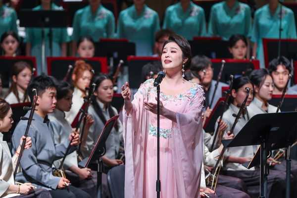 音樂(lè)會(huì)中唯一的聲樂(lè)作品《西湖賦》,是整臺(tái)節(jié)目的又一亮點(diǎn)。歌詞選自當(dāng)代古文名家楊威的同名詩(shī),由浙江音樂(lè)學(xué)院聲樂(lè)歌劇系教授金瑤領(lǐng)唱。音樂(lè)圍繞字詞鋪展,生動(dòng)描繪了西湖的精致,抒發(fā)了詩(shī)文之情感,帶領(lǐng)聽(tīng)眾領(lǐng)略作曲家筆下的“人間絕勝西子湖”。