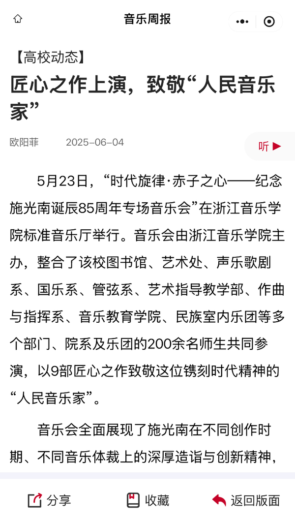 音樂(lè)周報(bào):匠心之作上演,致敬“人民音樂(lè)家”