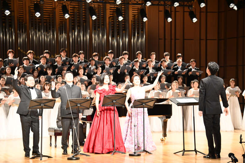 此次首演的男女聲二重唱《靜夜思》歌曲,施光南以李白同名詩為詞,突破了西洋曲式創(chuàng)作手法,吸收民間戲曲與古典音樂特點(diǎn)。浙江音樂學(xué)院聲樂歌劇系教師范雙燕、方遠(yuǎn)用清亮且低沉的嗓音,唱出了游子月下懷鄉(xiāng)的東方意境;合唱組曲《在祖國大家庭里》之《藍(lán)天上飛過的跑馬云》也是首次公開演出,施光南在作品中以蒙古族長調(diào)元素為核心,勾勒出遼闊草原的悠遠(yuǎn)意境。