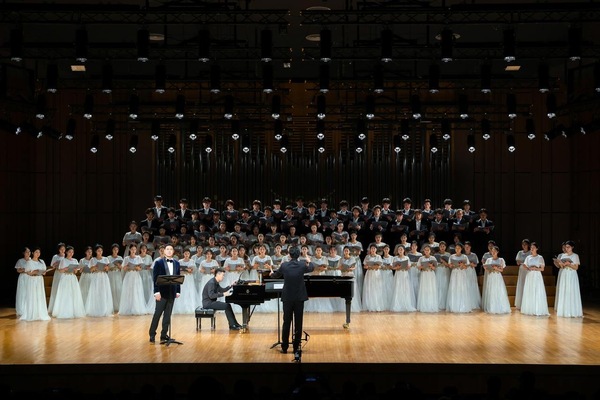 首演的合唱組曲《在祖國大家庭里》之《藍天上飛過的跑馬云》以蒙古族長調元素為核心,劉濤的演唱與浙音合唱學院的多彩和聲相互呼應,勾勒出遼闊草原的悠遠意境,彰顯了施光南先生在少數(shù)民族音樂創(chuàng)作領域的深耕。