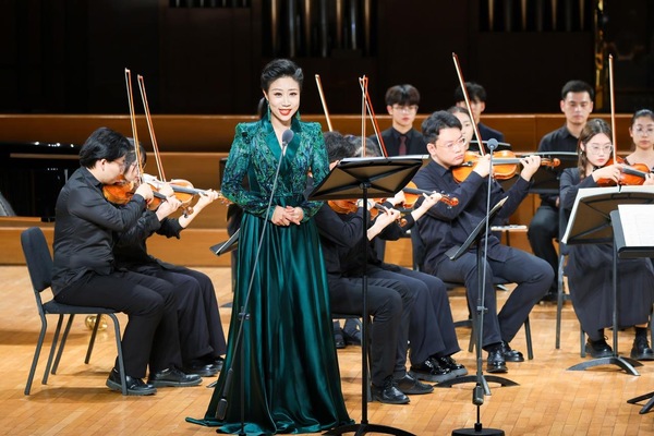 女高音獨唱《西湖春》以杭州西湖春日為靈感,以江南民歌、越劇風韻點染水墨江南,聲樂歌劇系教師許紅霞的演唱空靈婉轉,將江南水鄉(xiāng)的柔美與生機娓娓道來。