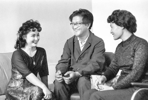 作曲家施光南(中)同歌唱家李谷一(左)、羅天嬋在一起(資料照片)。圖源 新華社