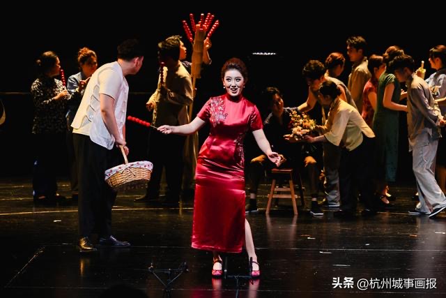 這對(duì)“師徒傳承”的舞臺(tái)對(duì)手,在嗩吶演奏張家瑞高亢凄厲的即興穿插中更顯張力,傳統(tǒng)民樂(lè)與歌劇唱腔交織,將市井婚姻的無(wú)奈與宿命感推向高潮。