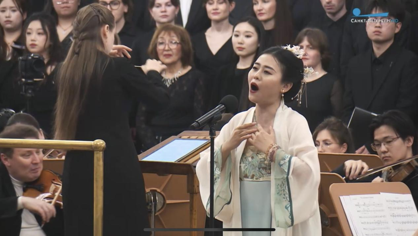 音樂(lè)會(huì)上,浙江音樂(lè)學(xué)院的李珺副教授與方香蕾老師還共同呈現(xiàn)了她們的新作——歌曲《余杭景》的世界首演,成為本場(chǎng)音樂(lè)會(huì)的亮點(diǎn)。方香蕾老師身著典雅的中國(guó)宋氏漢服,以婉轉(zhuǎn)悠揚(yáng)的交響樂(lè)旋律引領(lǐng)聽(tīng)眾步入古代杭州的美麗景致。隨著樂(lè)曲的推進(jìn),最終以激昂的高音將這首曲目推向了高潮。中國(guó)駐圣彼得堡總領(lǐng)事羅占輝先生對(duì)此作品“宋韻文化”出海,以及對(duì)作品《余杭景》給予了高度贊譽(yù)。他指出,此作品是中國(guó)古典文化出海的一次重要里程碑,在兩國(guó)音樂(lè)文化發(fā)展中積極的促進(jìn)了國(guó)家政策“一帶一路”的國(guó)際合作,以及推動(dòng)了浙江音樂(lè)文化作為陸路絲綢之路的國(guó)際傳播力,并鼓勵(lì)中國(guó)的藝術(shù)家們繼續(xù)弘揚(yáng)中國(guó)文化,發(fā)展絲綢之路系列藝術(shù)作品,向世界推廣中國(guó)歷史文化遺產(chǎn)。