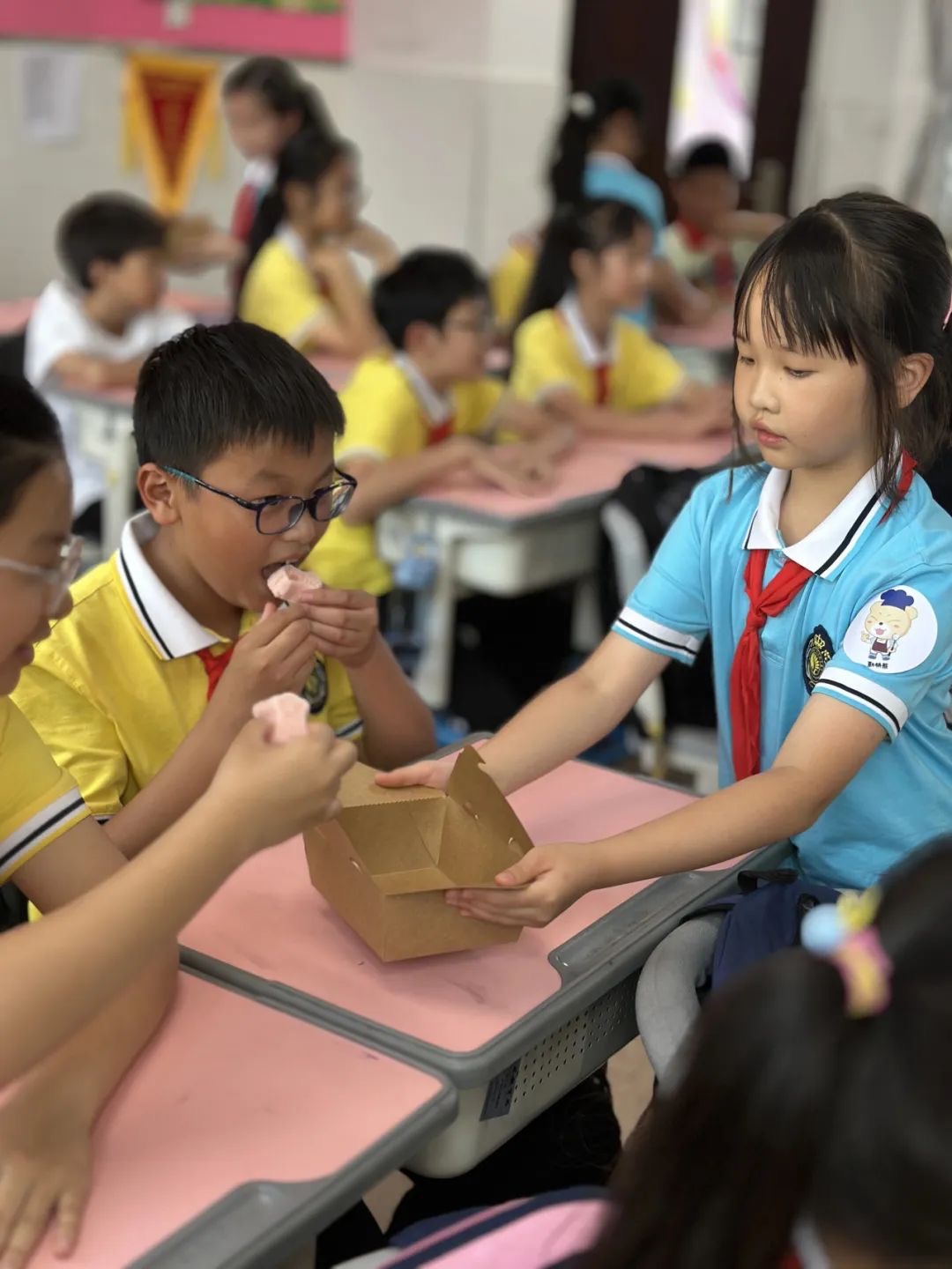 杭州市丁信小學(xué)三年級的孩子們制作傳承著美好寓意的定勝糕,送給六年級的哥哥姐姐們,“希望他們吃了我們的定勝糕,不管走到哪里都能‘定勝’!”