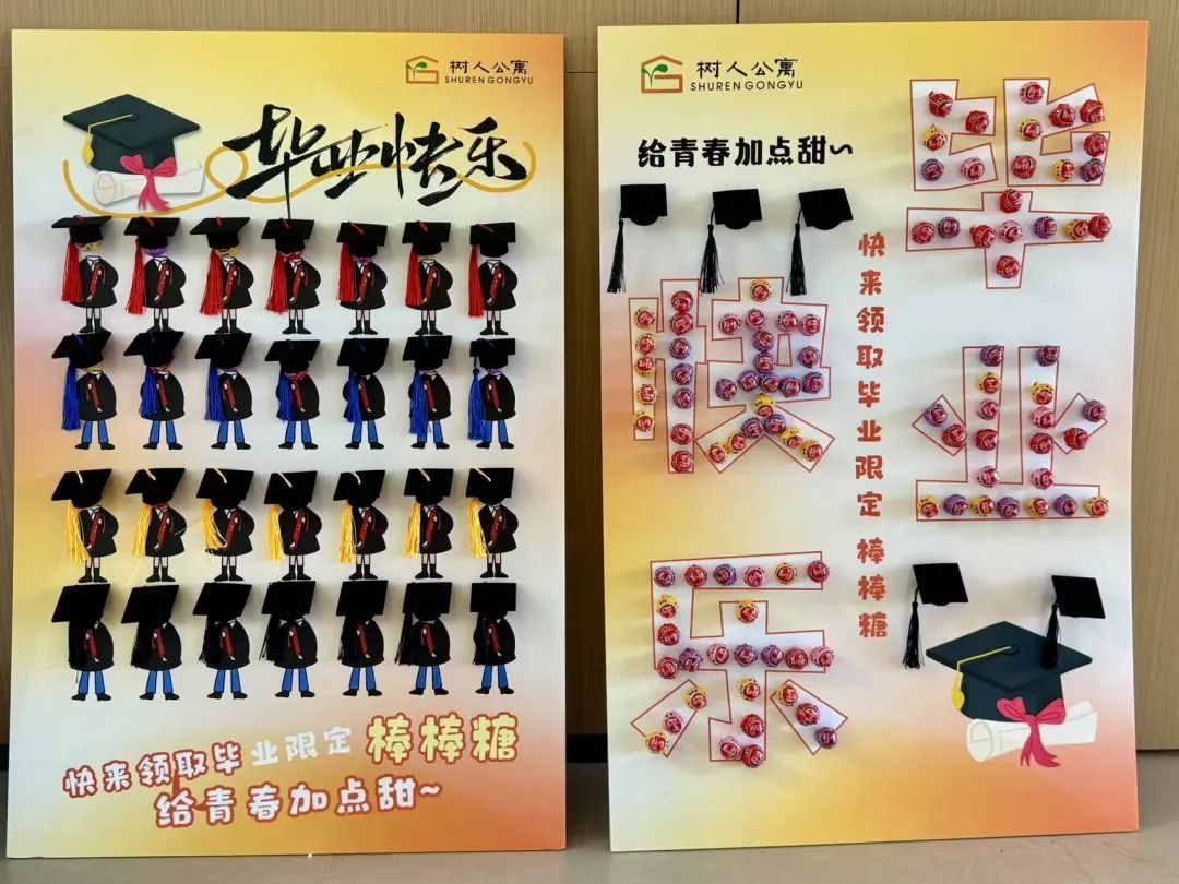 浙江樹人學(xué)院給2025屆畢業(yè)生準(zhǔn)備了畢業(yè)限定棒棒糖,棒棒糖加畢業(yè)帽的形狀,搭配可粘貼手寫祝福標(biāo)簽,給畢業(yè)生們留下了甜蜜的回憶。