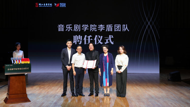 6月19日上午,浙江音樂學院音樂劇學院籌建啟動儀式在現(xiàn)代音樂廳舉行?,F(xiàn)場,浙江音樂學院音樂劇學院和音樂劇中心正式揭牌。這標志著浙音將以“學院+中心”的雙輪驅(qū)動模式,著力構(gòu)建具有“產(chǎn)學研創(chuàng)”特色的中國音樂劇學科建設(shè)與人才培養(yǎng)自主知識體系,全力打造國際一流的音樂劇人才培養(yǎng)高地。
