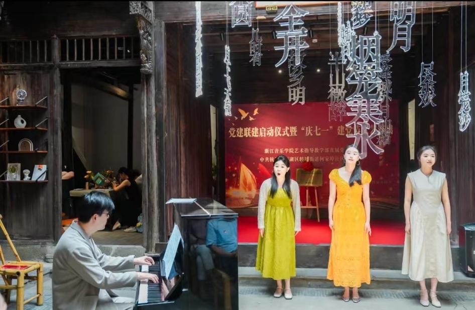 轉(zhuǎn)塘街道黨工委副書記高曉燕介紹,此次校地聯(lián)建是貫徹黨的二十大精神、創(chuàng)新基層黨建的重要實踐?;顒幼⒅貙嶋H成效,將共建成果轉(zhuǎn)化為提升社區(qū)治理水平和培養(yǎng)藝術(shù)人才的雙贏實效,既讓高雅藝術(shù)滋養(yǎng)社區(qū),又為師生提供實踐舞臺,最終實現(xiàn)黨建引領(lǐng)高質(zhì)量發(fā)展的目標(biāo)。